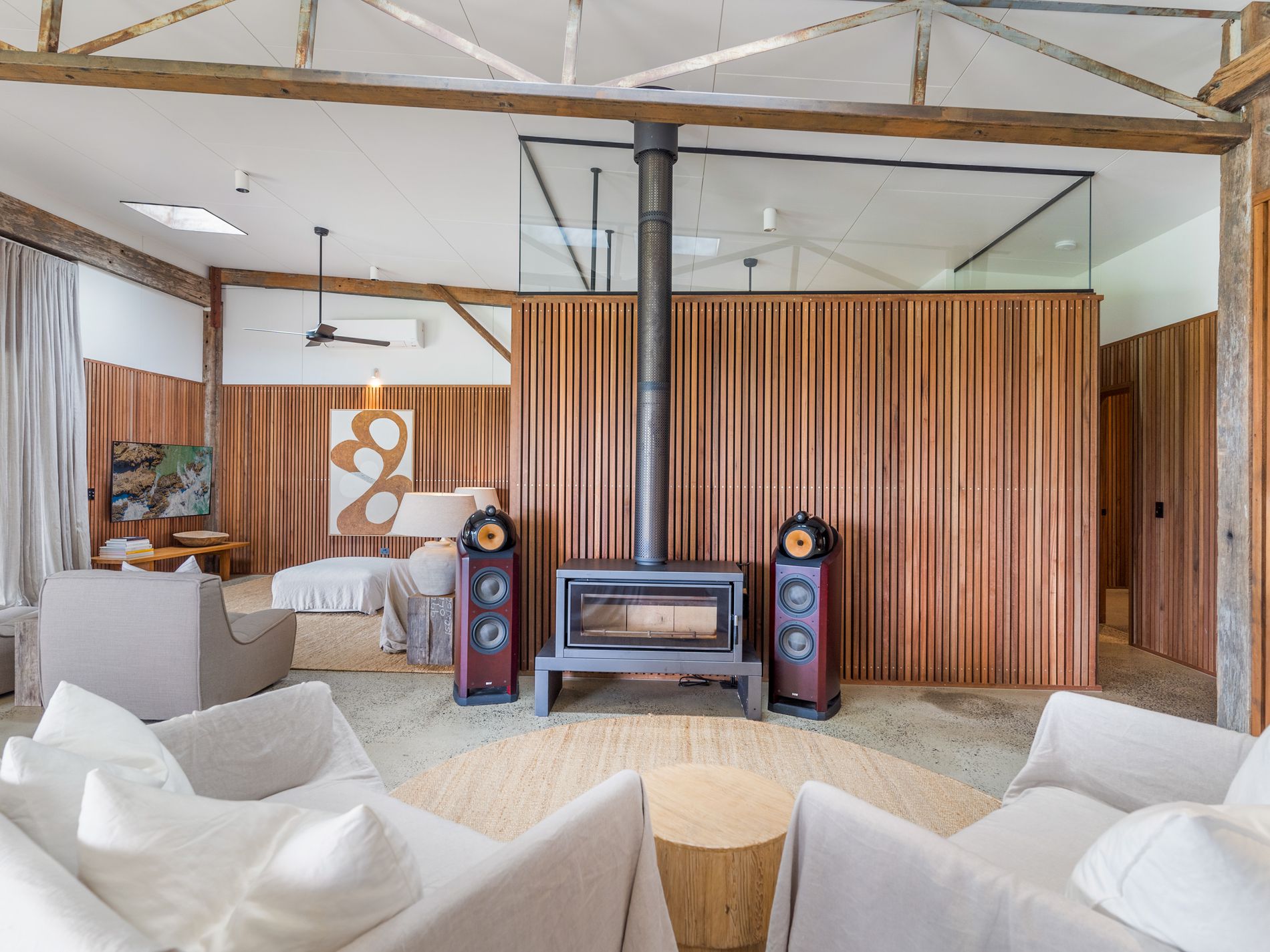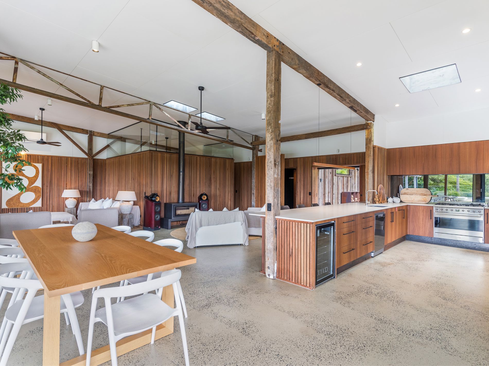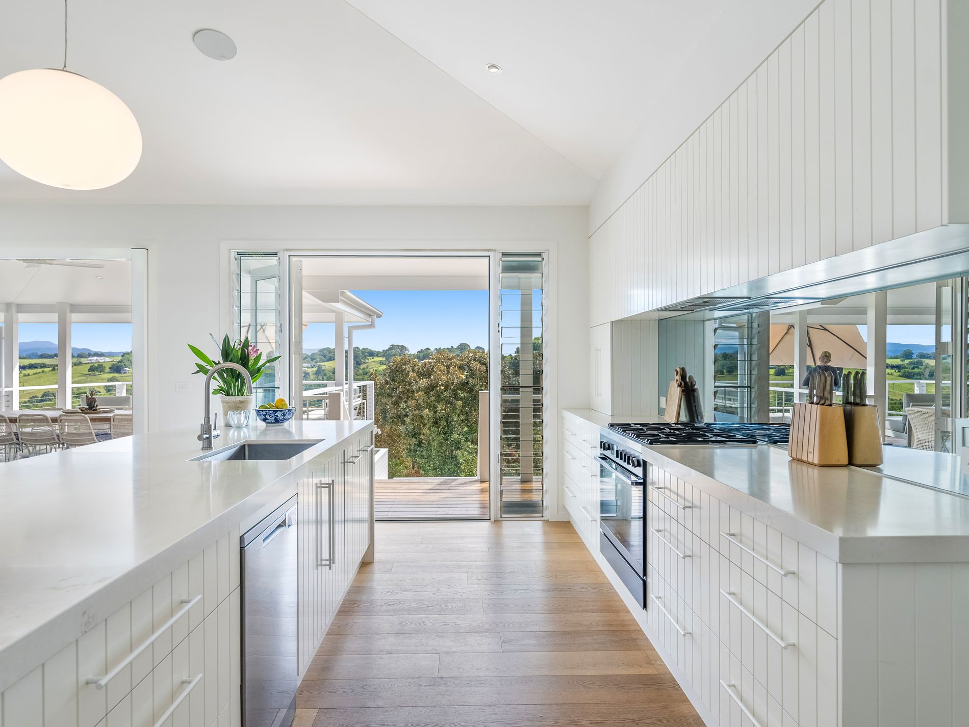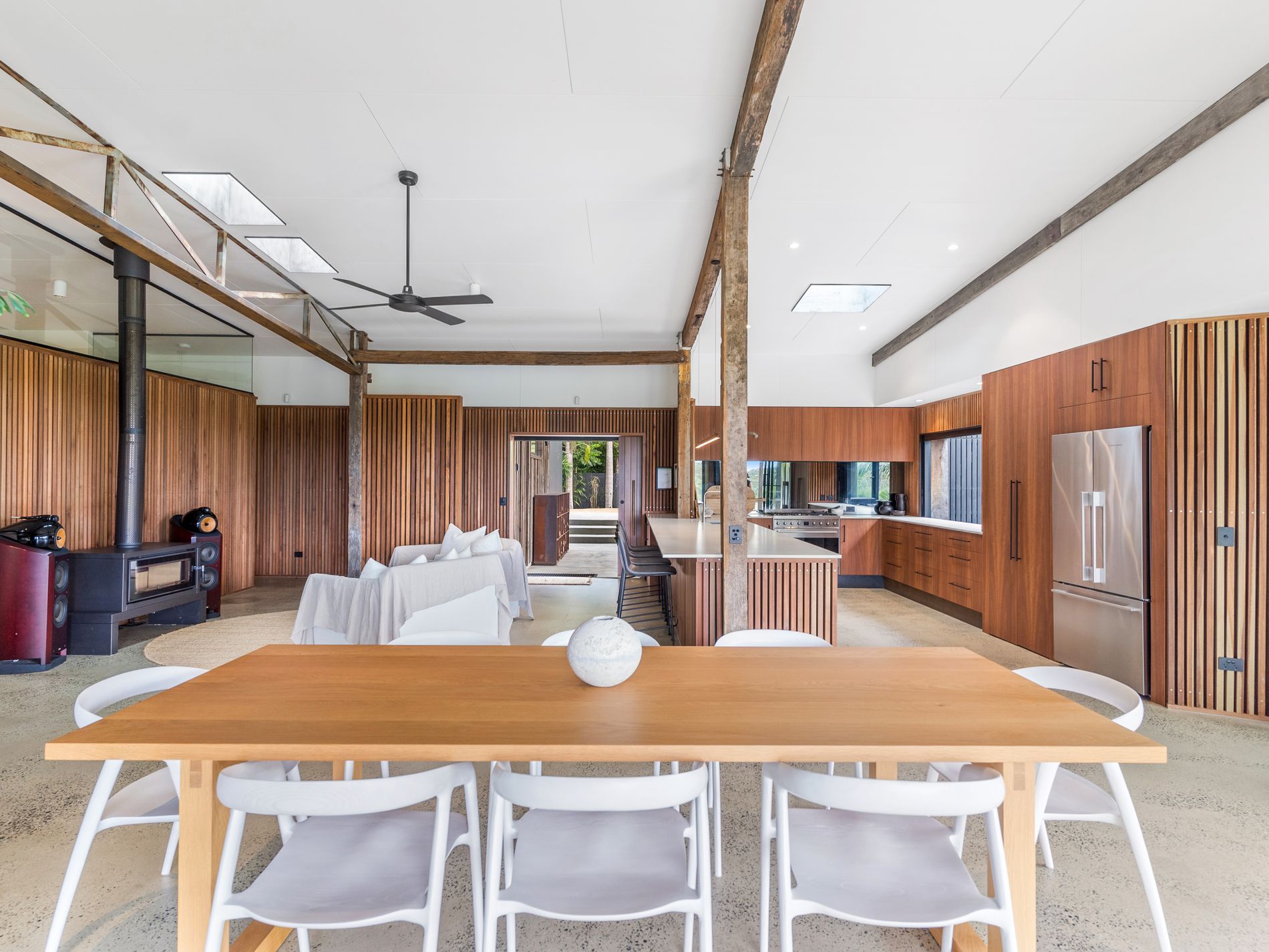 • The Farmhouse: Modern homestead with expansive views of Nightcap Range, multiple alfresco spaces, European oak flooring, and advanced Tesla power system.