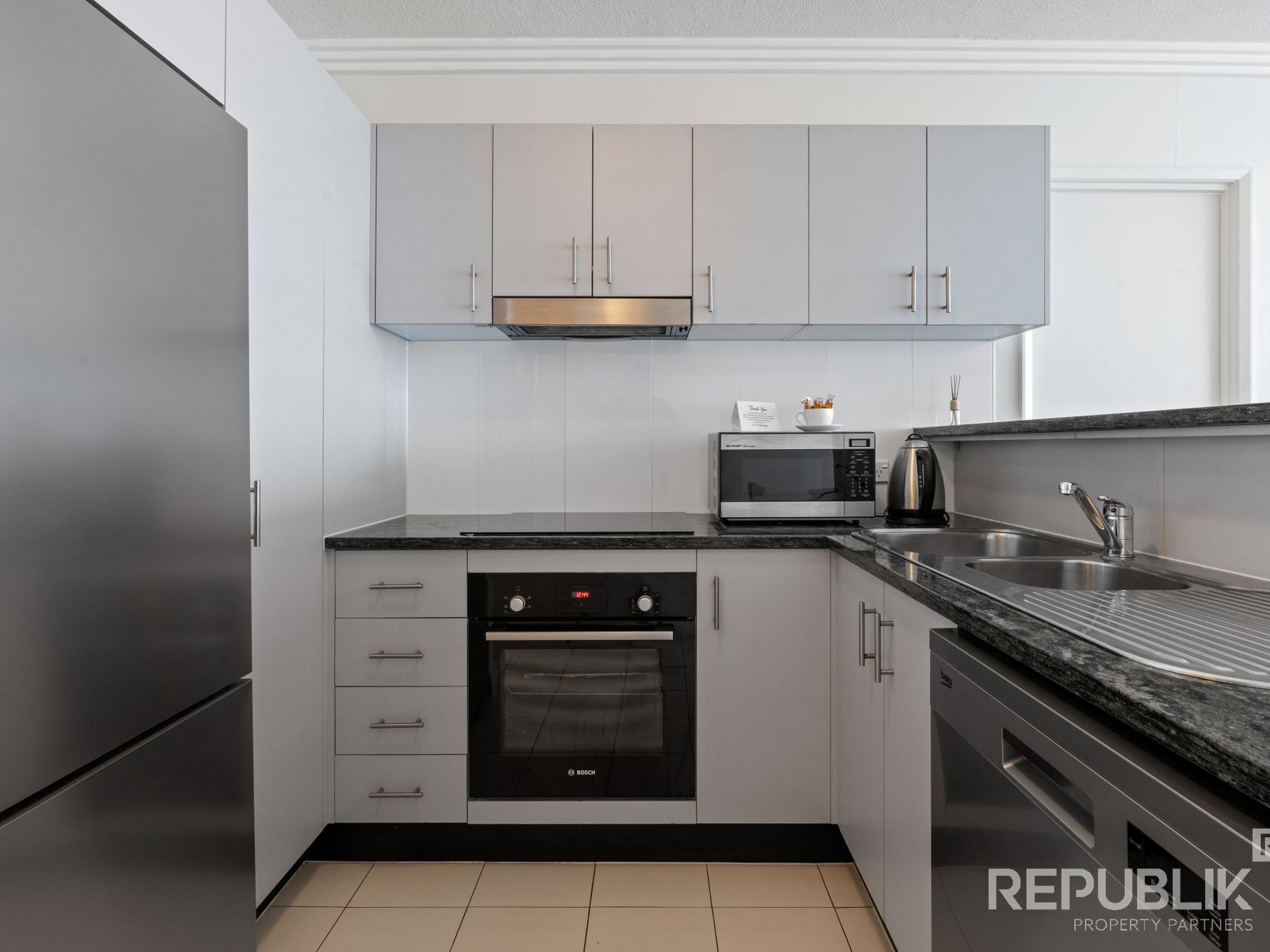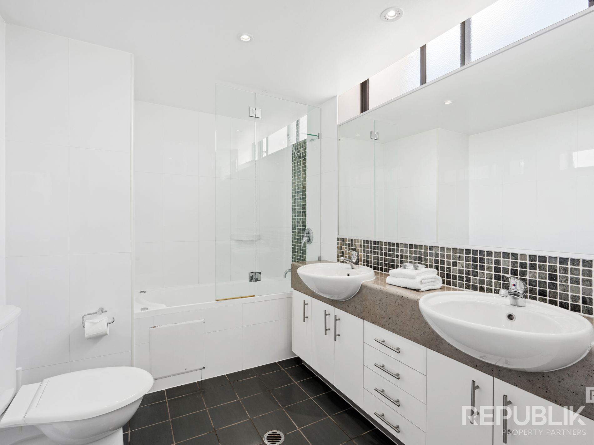 Designed for seamless indoor–outdoor living, the apartment features open-plan interiors flowing to a private balcony with sweeping Broadwater and parkland views. Large windows fill the home with natural light, while the modern kitchen integrates effortlessly with the living and dining space. The generous bedroom includes built-in storage and direct balcony access, with a spacious dual-access bathroom offering a double vanity and shower-over-bath.