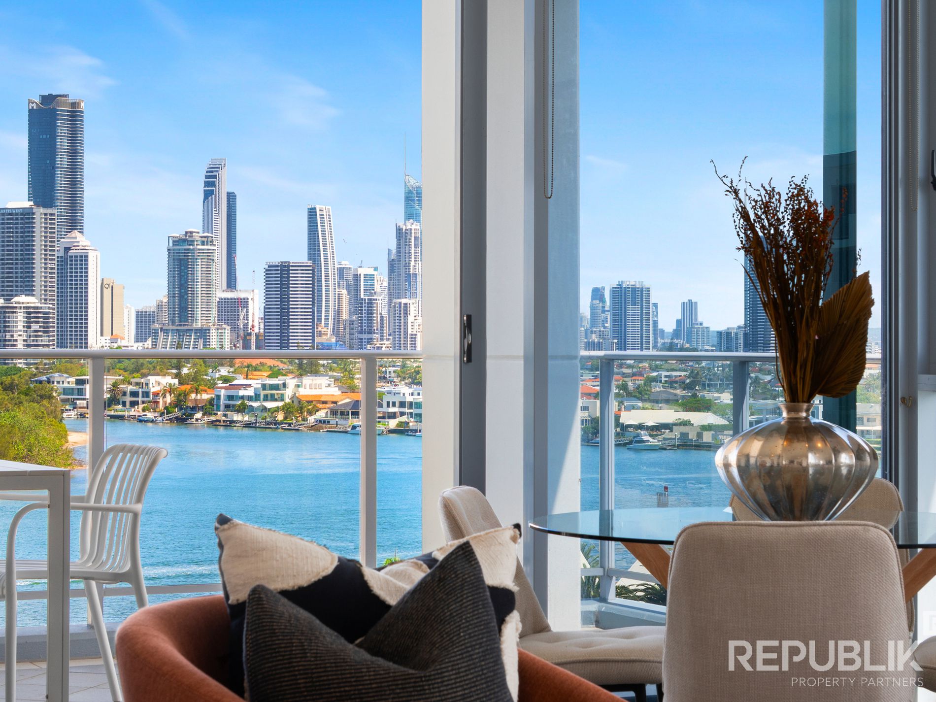 Positioned on the 11th floor of the tightly held Marina Meriton building, this beautifully presented apartment offers an exceptional blend of lifestyle, comfort and convenience, enhanced by sweeping Broadwater, hinterland and skyline views.