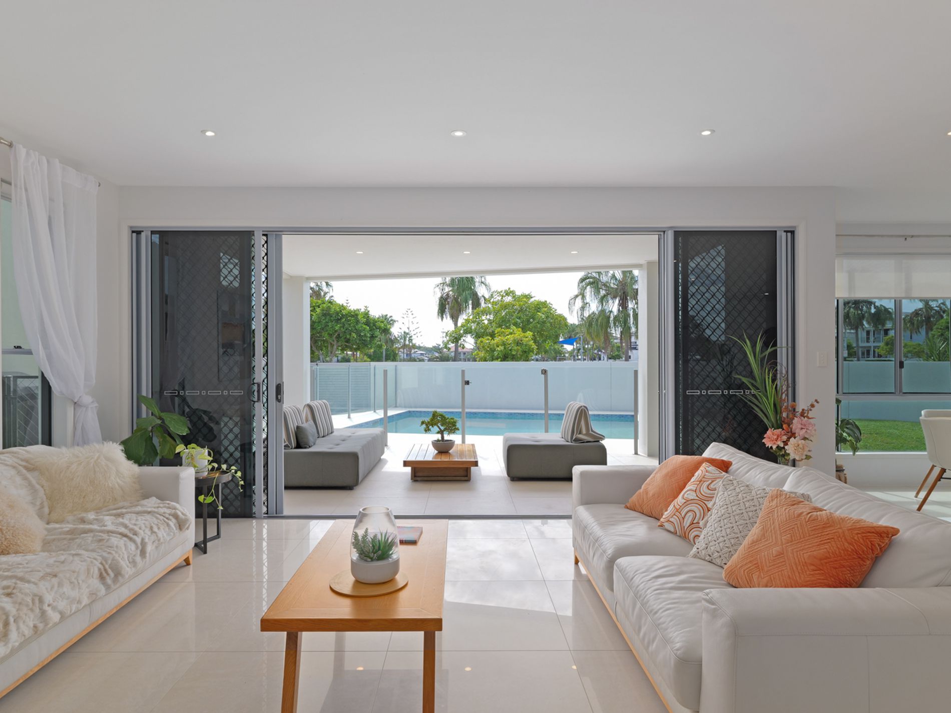 Commanding a magnificent presence on a substantial corner block, this modern contemporary residence offers refined elegance and exceptional comfort in the exclusive suburb of Kawana Island on the Sunshine Coast. Distinguished by its solid foundations, tinted glass, and architectural design, this executive-style home was created and built in 2009, embodying the perfect marriage of style and enduring quality. Opposite lush parkland and boasting stunning water views from the parents' retreat, this is your opportunity to secure a dream home in a coveted lifestyle location.